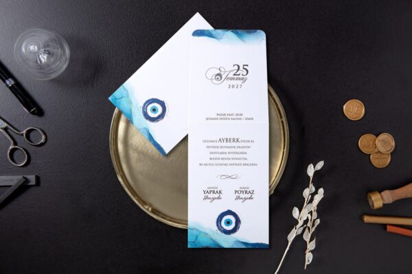 Aras Sünnet Davetiyesi Nazar Boncuklu Modern Sade Zarfsız Ekonomik Model – 5019