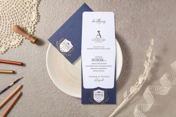 Aras Sünnet Davetiyesi Nazar Boncuklu Modern Sade Zarfsız Ekonomik Model – 5016