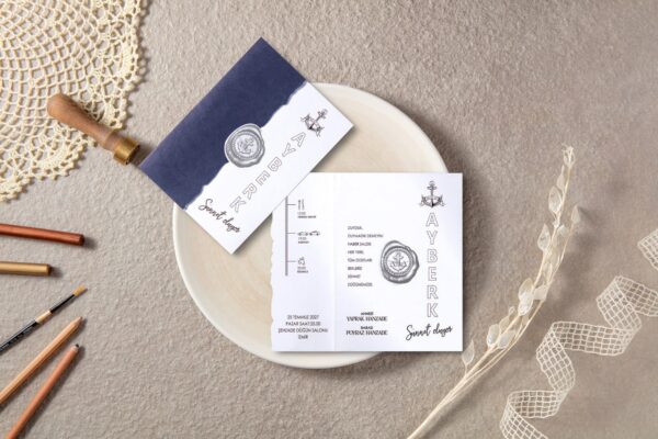 Aras Sünnet Davetiyesi Denizci Çapa Kaptan Temalı Zarfsız Ekonomik Model – 5020