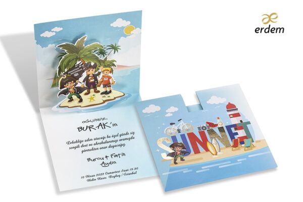 Sünnet Davetiyesi 3D Eğlenceli Model Korsan Mavi Renk (100 Adet) – 80945