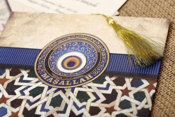 Aras Sünnet Davetiyesi Kabartmalı Nazar Boncuğu Maşallah Püsküllü Kare Model – 4994