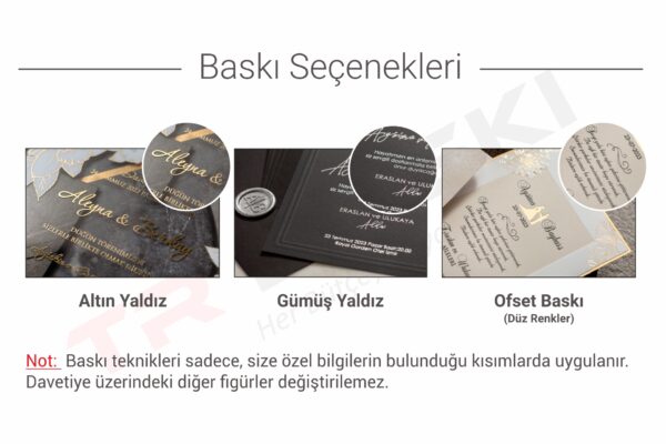 • Davetiyeler katalogda görüldüğü gibidir, ilave zarf ve aksesuar içermemektedir.