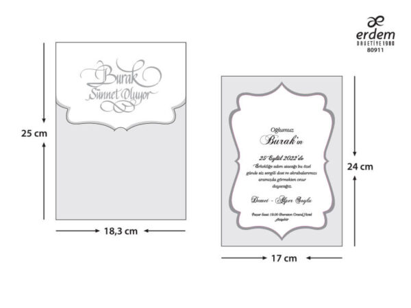 - Davetiyeler katalogda görüldüğü gibidir, ilave zarf ve aksesuar içermemektedir.